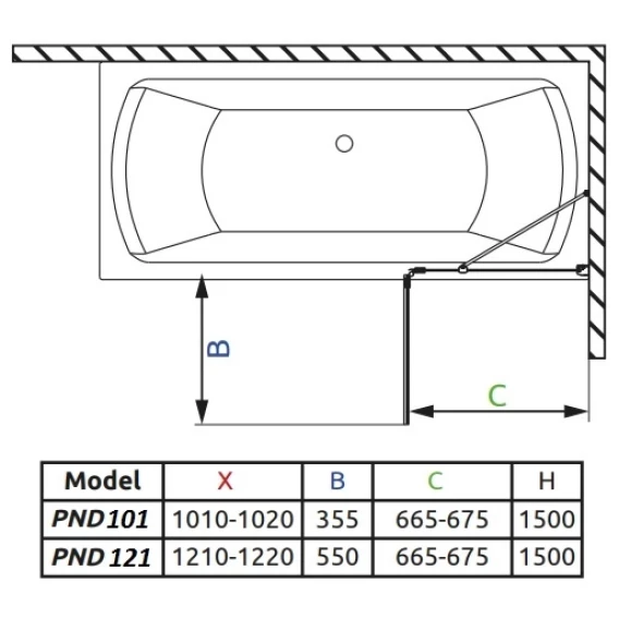Шторка для ванны Radaway Torrenta PND 121 R прозрачное
