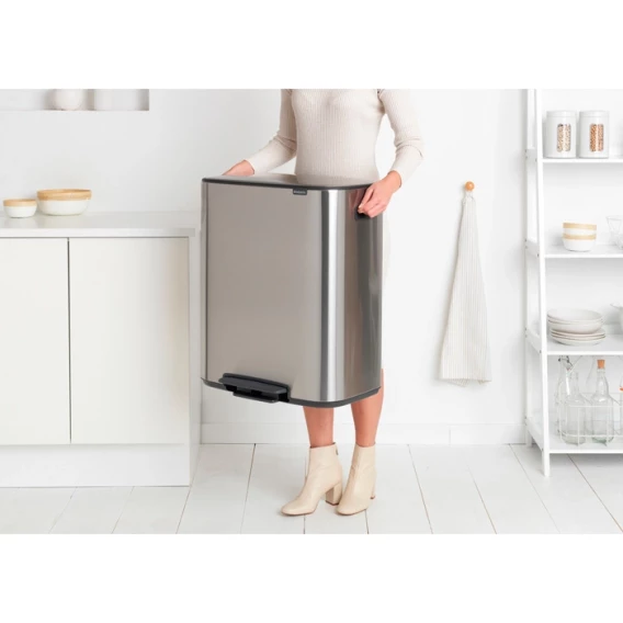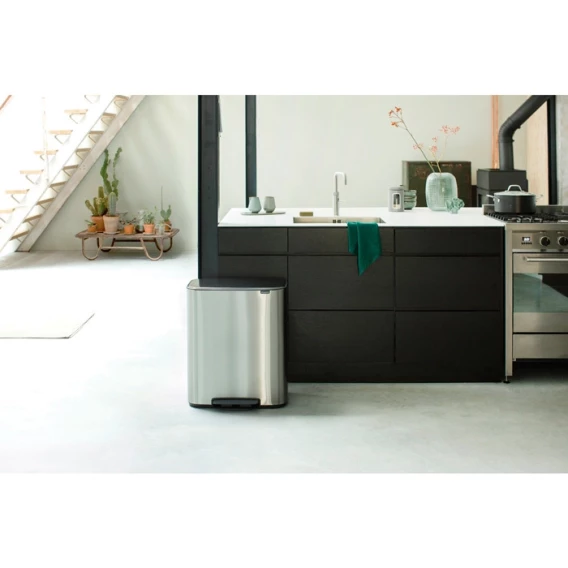 Высокий и одновременно вместительный бак для ещё большего количества домашних отходов. Бесшумный – плавное закрывание крышки и необыкновенно мягкий ход педали. Не пропускает запах – плотно прилегающая крышка. Крышка удобно фиксируется в открытом положении специальным переключателем. Экономия места – удобно устанавливается вплотную к стене или в углу. Удобная очистка – съемное внутреннее ведро из пластика. Отличная устойчивость и защита пола от повреждения – нескользящее основание. Бесплатная упаковка мешков для мусора Brabantia PerfectFit (размер M) – удобная замена и всегда опрятный вид. Бронзовый сертификат "Cradle to Cradle". Бак подлежит вторичной переработке на 98%, упаковка и внутренние ведра на 100%.
