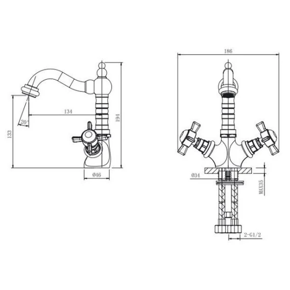 Смеситель для раковины с донным клапаном Caprigo Bristol 21-526-crm