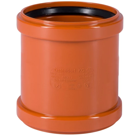 Муфта ремонтная (надвижная) Ostendorf KGU предназначена для профессионального ремонта трубопровода безнапорной канализации при его разрыве и повреждении. В этом случае вырезается поврежденный участок и заменяется новым элементом, который крепится к основной конструкции с помощью надвижной муфты.