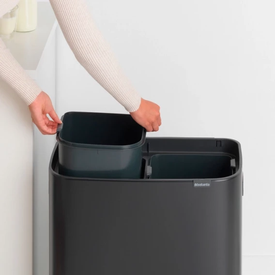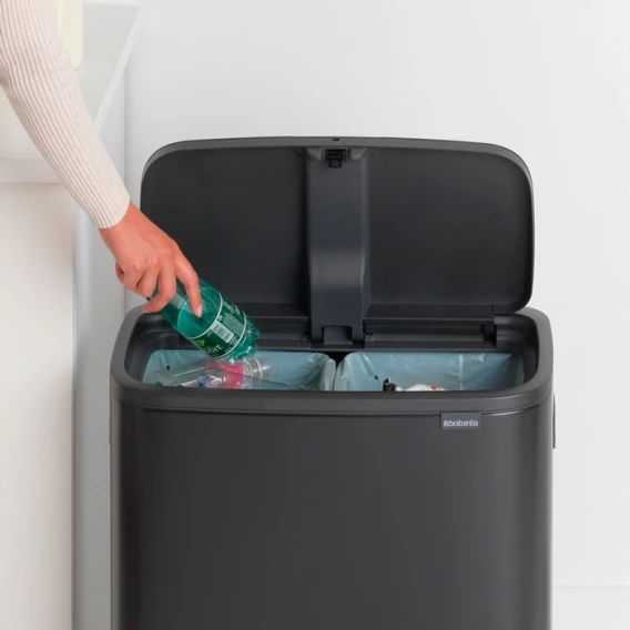 Высокий и одновременно вместительный бак для ещё большего количества домашних отходов. Крышка бесшумно открывается легким касанием – система 'Soft-Touch'. Экономия места – удобно устанавливается вплотную к стене или в углу. 2 съемных внутренних ведра – идеальное решение для раздельного сбора домашних отходов. Идеальное решение для сбора объемного мусора – крышка фиксируется в открытом положении. Удобная очистка – съемные внутренние ведра из пластика. Отличная устойчивость и защита пола от повреждения – нескользящее основание. Бесплатная упаковка мешков для мусора Brabantia PerfectFit (размер O) – удобная замена и всегда опрятный вид. Бронзовый сертификат "Cradle to Cradle".