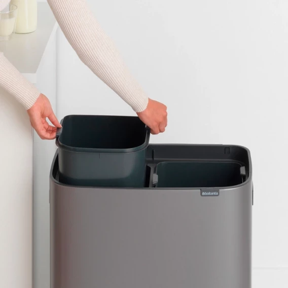 Высокий и одновременно вместительный бак для ещё большего количества домашних отходов. Крышка бесшумно открывается легким касанием – система 'Soft-Touch'. Экономия места – удобно устанавливается вплотную к стене или в углу. 2 съемных внутренних ведра – идеальное решение для раздельного сбора домашних отходов. Идеальное решение для сбора объемного мусора – крышка фиксируется в открытом положении. Удобная очистка – съемные внутренние ведра из пластика. Отличная устойчивость и защита пола от повреждения – нескользящее основание. Бесплатная упаковка мешков для мусора Brabantia PerfectFit (размер O) – удобная замена и всегда опрятный вид. Бронзовый сертификат "Cradle to Cradle".