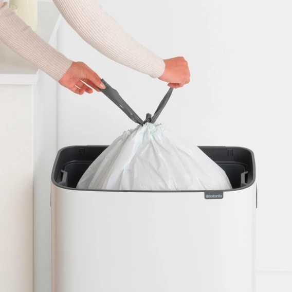 Высокий и одновременно вместительный бак для ещё большего количества домашних отходов. Крышка бесшумно открывается легким касанием – система 'Soft-Touch'. Экономия места – удобно устанавливается вплотную к стене или в углу. Идеальное решение для сбора объемного мусора – крышка фиксируется в открытом положении. Удобная очистка – съемное внутреннее ведро из пластика. Отличная устойчивость и защита пола от повреждения – нескользящее основание. Бесплатная упаковка мешков для мусора Brabantia PerfectFit (размер M) – удобная замена и всегда опрятный вид. Бронзовый сертификат "Cradle to Cradle".