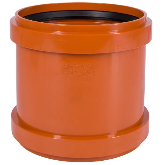 Муфта ремонтная (надвижная) Ostendorf KGU предназначена для профессионального ремонта трубопровода безнапорной канализации при его разрыве и повреждении. В этом случае вырезается поврежденный участок и заменяется новым элементом, который крепится к основной конструкции с помощью надвижной муфты.