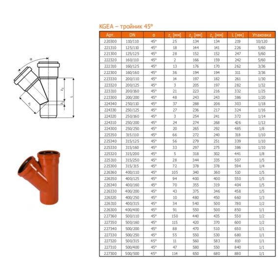 Тройник 500 х 110 х 45° Ostendorf KGEA 227360