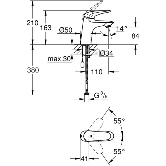 Смеситель для раковины с цепочкой Grohe Eurostyle New 23714003