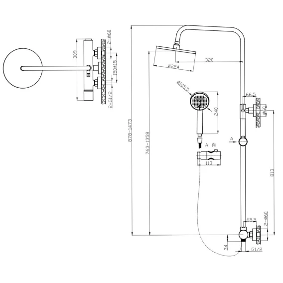Металлическая розетка, Эксцентрики, Душевой шланг, Душевая лейка, Держатель для душевой лейки, Верхний душ, Смеситель, Кронштейн, Штанга душевая
