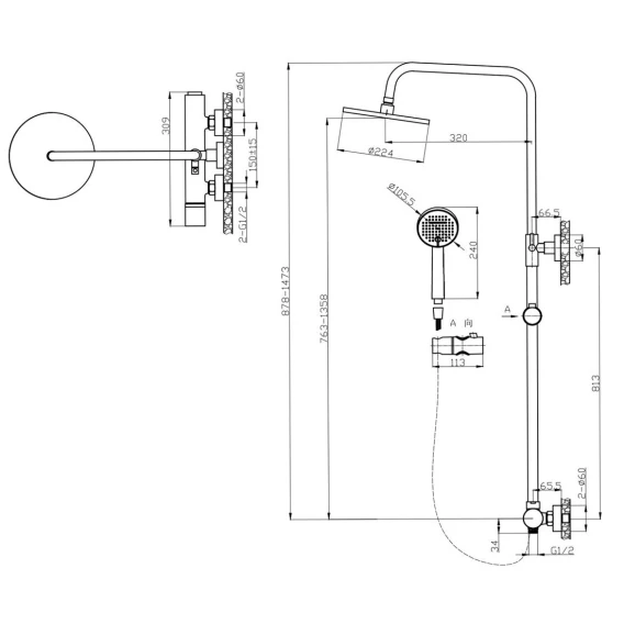 Металлическая розетка, Эксцентрики, Душевой шланг, Душевая лейка, Держатель для душевой лейки, Верхний душ, Смеситель, Кронштейн, Штанга душевая