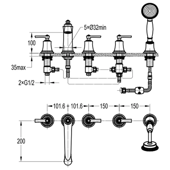 Крепление, Аэратор, Душевой шланг, Душевая лейка