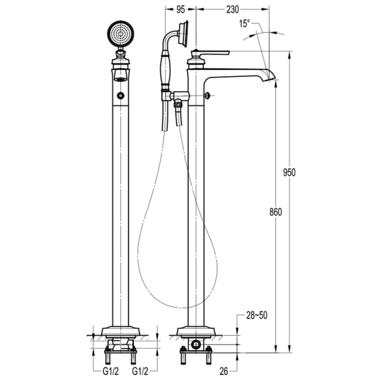 Смеситель напольный для ванны Swedbe Terracotta Art 2514