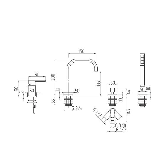 Смеситель на борт ванны Remer Minimal N27