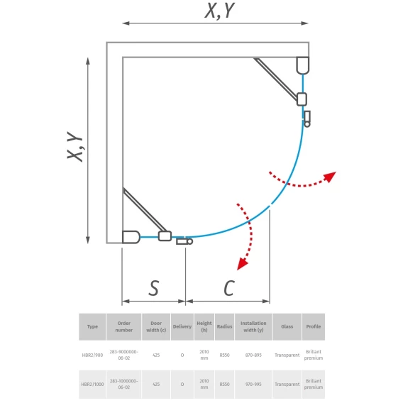 Душевой уголок Roltechnik Hitech HBR2/900 283-9000000-06-02 прозрачное