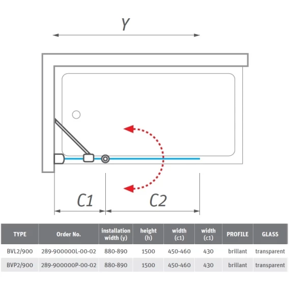Шторка для ванны Roltechnik Activa Neo BVL2/900 289-900000L-00-02 прозрачное