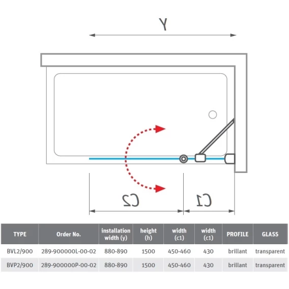 Шторка для ванны Roltechnik Activa Neo BVP2/900 289-900000P-00-02 прозрачное