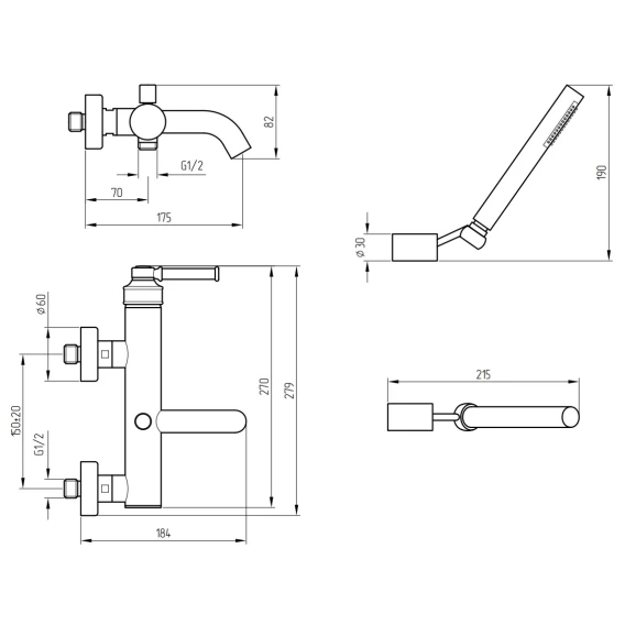 Аэратор, Металлическая розетка, Эксцентрики, Душевой шланг, Душевая лейка, Держатель для душевой лейки