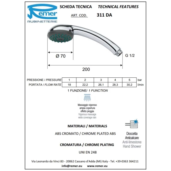 Душевая лейка 70 мм Remer 311DA