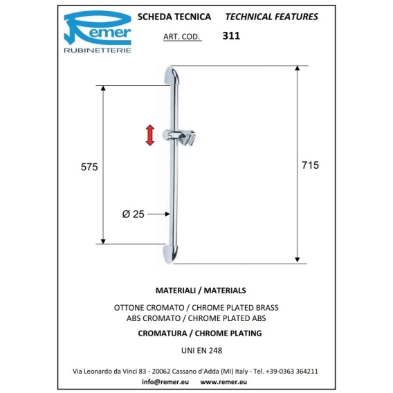Душевая штанга 71,5 см Remer 311F