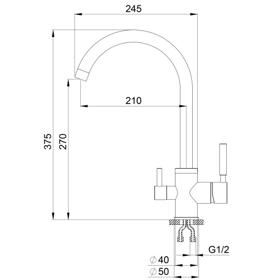 Смеситель для кухни с подключением к фильтру Granula базальт 3168bt