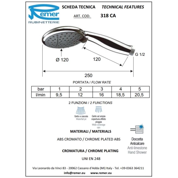 Душевая лейка Remer 317AR