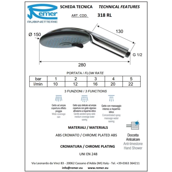 Душевая лейка 150 мм Remer 318RL