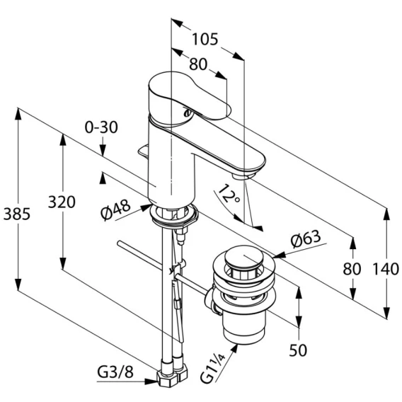 Смеситель для раковины с донным клапаном Kludi Objekta 322330575