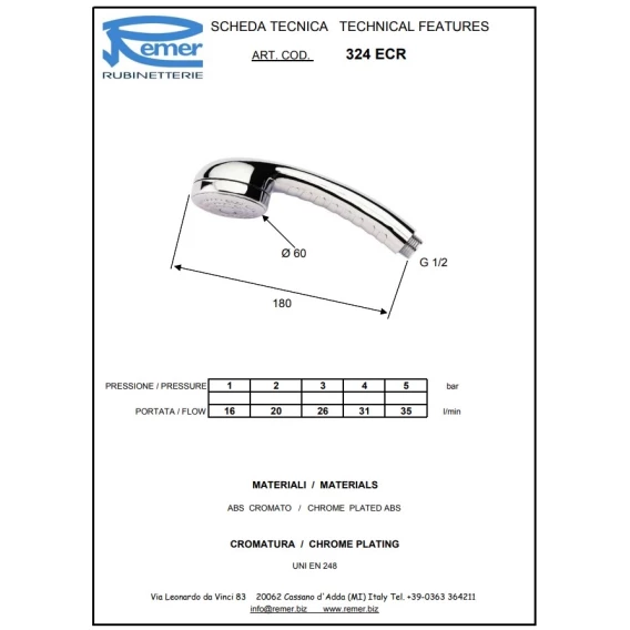 Душевая лейка 60 мм Remer 324ECR
