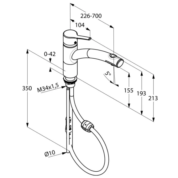 Крепление, Аэратор, Душевой шланг, Душевая лейка, Жесткая подводка