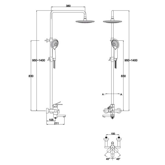 Аэратор, Металлическая розетка, Эксцентрики, Душевой шланг, Душевая лейка, Держатель для душевой лейки, Верхний душ, Смеситель, Кронштейн, Штанга душевая
