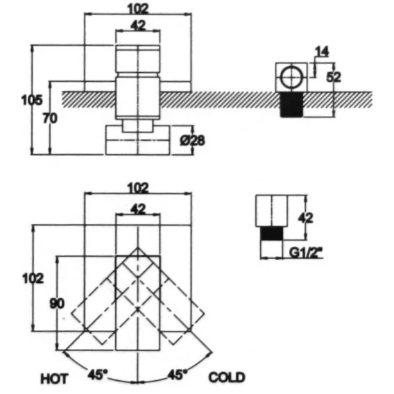 Подключение для душевого шланга, Скрытая монтажная часть