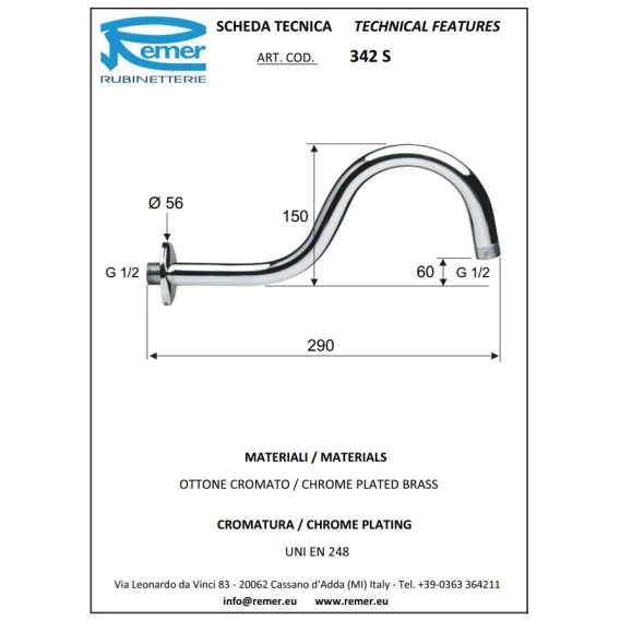 Кронштейн для душа 290 мм Remer 342S
