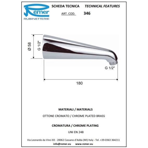 Кронштейн для душа 180 мм Remer 34620