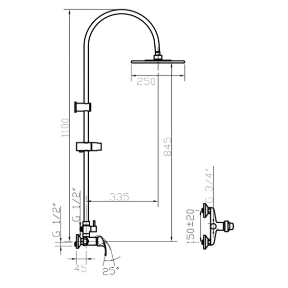 Душевая система 250 мм Argo Oksa 3506/C OKSA