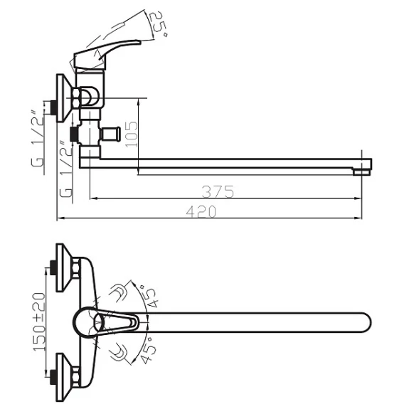 Длина излива 37.5 см