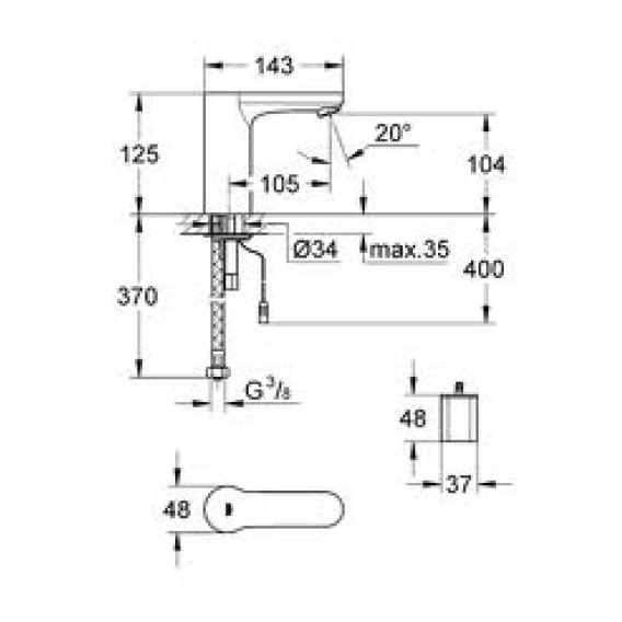 Инфракрасная электроника для раковны со встроенным устройством смешивания и регулируемым ограничителем температуры