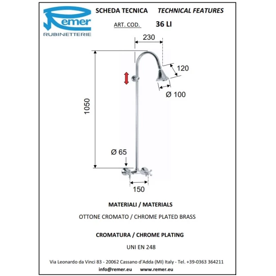 Кран для холодной воды без донного клапана Remer Liberty 51LICE