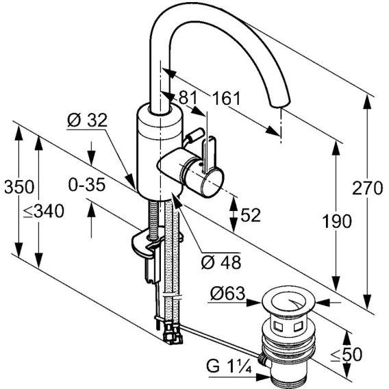 Крепление, Аэратор, Гибкая подводка, Донный клапан