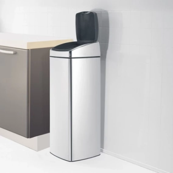 • Бесшумное открывание/закрывание крышки легким касанием – система «soft touch».• Компактный бак – удобно устанавливается вплотную к стене или в угол.• Удобная очистка – прочное съемное внутреннее ведро из пластика.        • Широкое загрузочное отверстие и большая вместимость – идеально подходит для сбора пустых бутылок из-под шампуня  и т.п. • Всегда опрятный вид – идеально подходящие по размеру мешки для мусора со стягивающей лентой (размер G).                                                    • 10-летняя гарантия Brabantia.