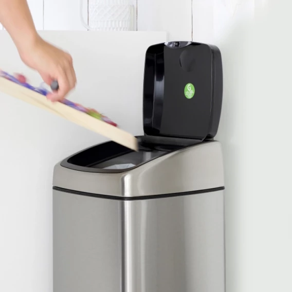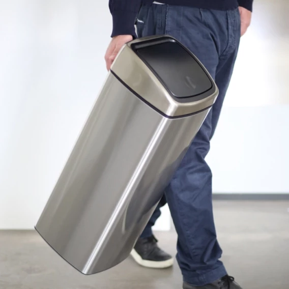 • Бесшумное открывание/закрывание крышки легким касанием – система «soft touch».• Компактный бак – удобно устанавливается вплотную к стене или в угол.• Удобная очистка – прочное съемное внутреннее ведро из пластика.        • Широкое загрузочное отверстие и большая вместимость – идеально подходит для сбора пустых бутылок из-под шампуня  и т.п. • Всегда опрятный вид – идеально подходящие по размеру мешки для мусора со стягивающей лентой (размер G).                                                    • 10-летняя гарантия Brabantia.