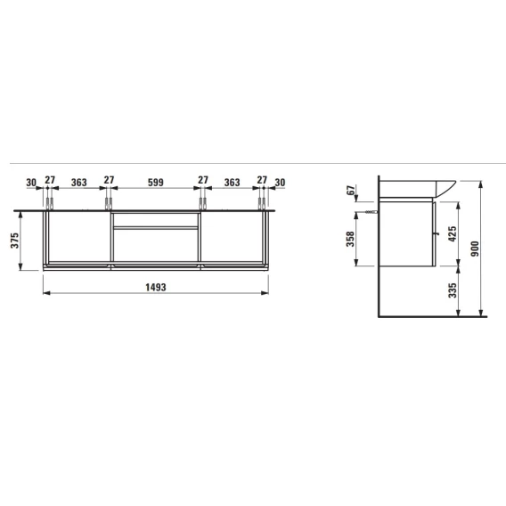 Тумба белый матовый 149,3 см 1 ящик, 2 дверцы Laufen Case 4.0135.1.075.463.1
