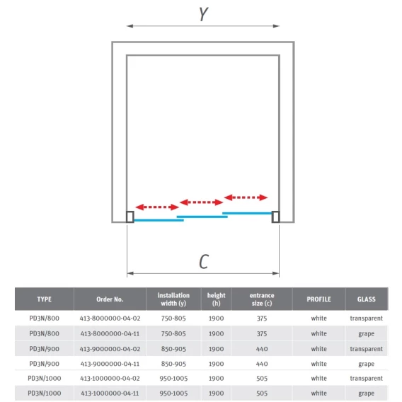 Душевая дверь Roltechnik Lega PD3N/900 413-9000000-04-02 прозрачное