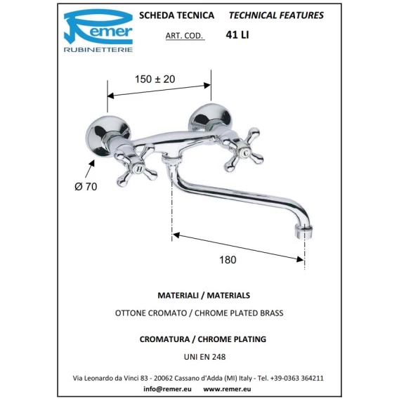 Кран для холодной воды без донного клапана Remer Liberty 51LICE