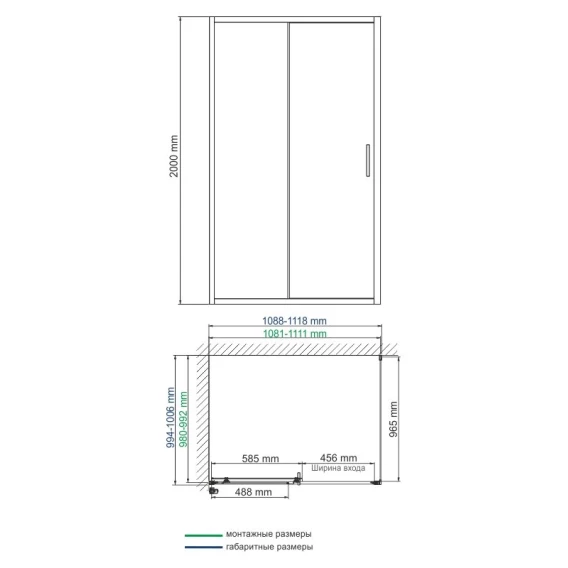 Душевая дверь 110 см WasserKRAFT Main 41S13 прозрачное