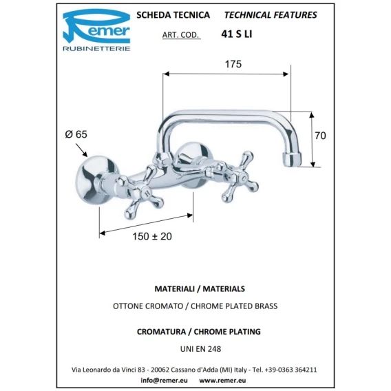 Кран для холодной воды без донного клапана Remer Liberty 51LICE
