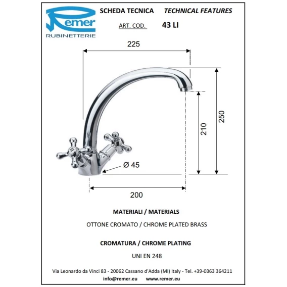 Кран для холодной воды без донного клапана Remer Liberty 51LICE