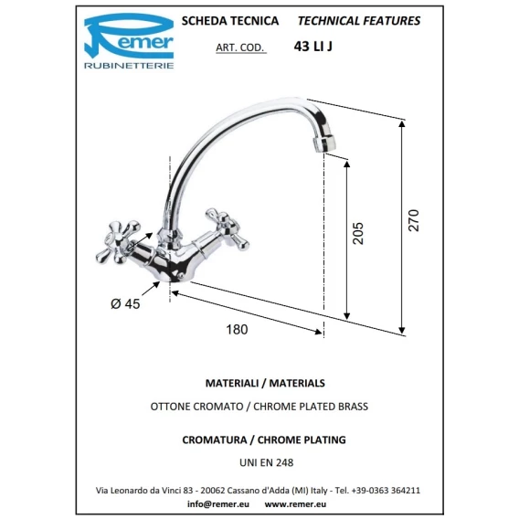 Смеситель для раковины с донным клапаном Remer Liberty 13ULI