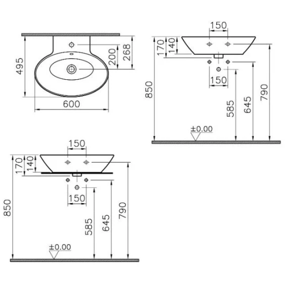 Раковина-чаша 60 см белый Vitra Geo 4424B003-0016
