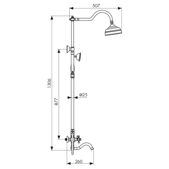 Аэратор, Металлическая розетка, Эксцентрики, Душевой шланг, Душевая лейка, Держатель для душевой лейки, Верхний душ, Смеситель, Кронштейн, Штанга душевая