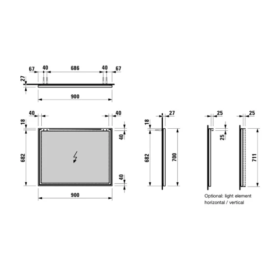 Зеркало 90x70 см Laufen Frame 25 4.4740.5.900.144.1