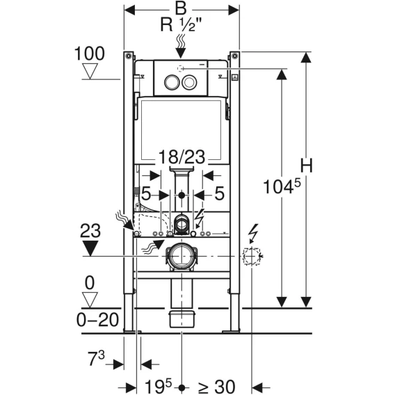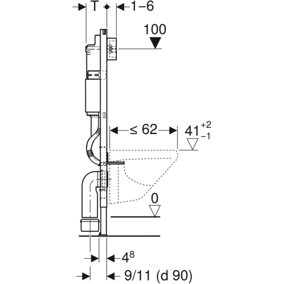 Оснащен трубкой подвода воды для подсоединения унитазов-биде Geberit AquaClean