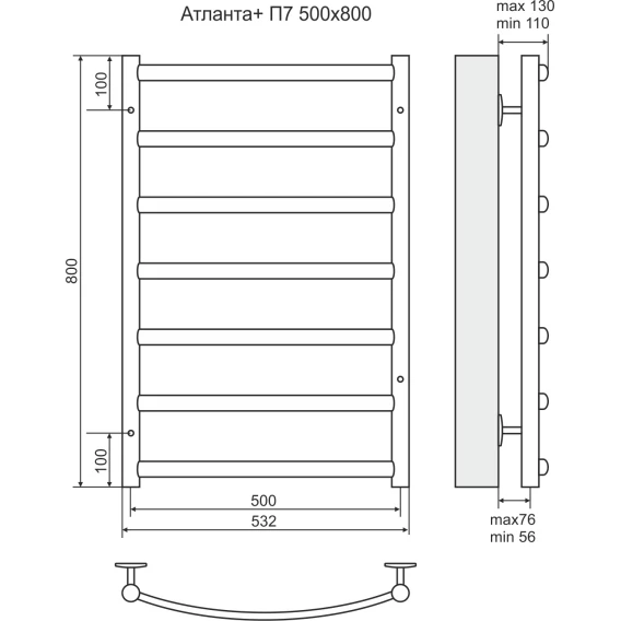 Полотенцесушитель водяной 591x532 Terminus Анкона с полкой П6